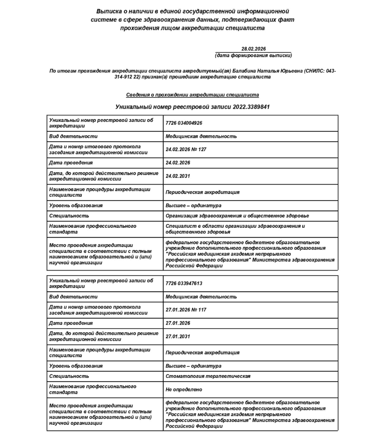 Стоматология - Базовое образование - 1998 г. Иркутский государственный медицинский университет