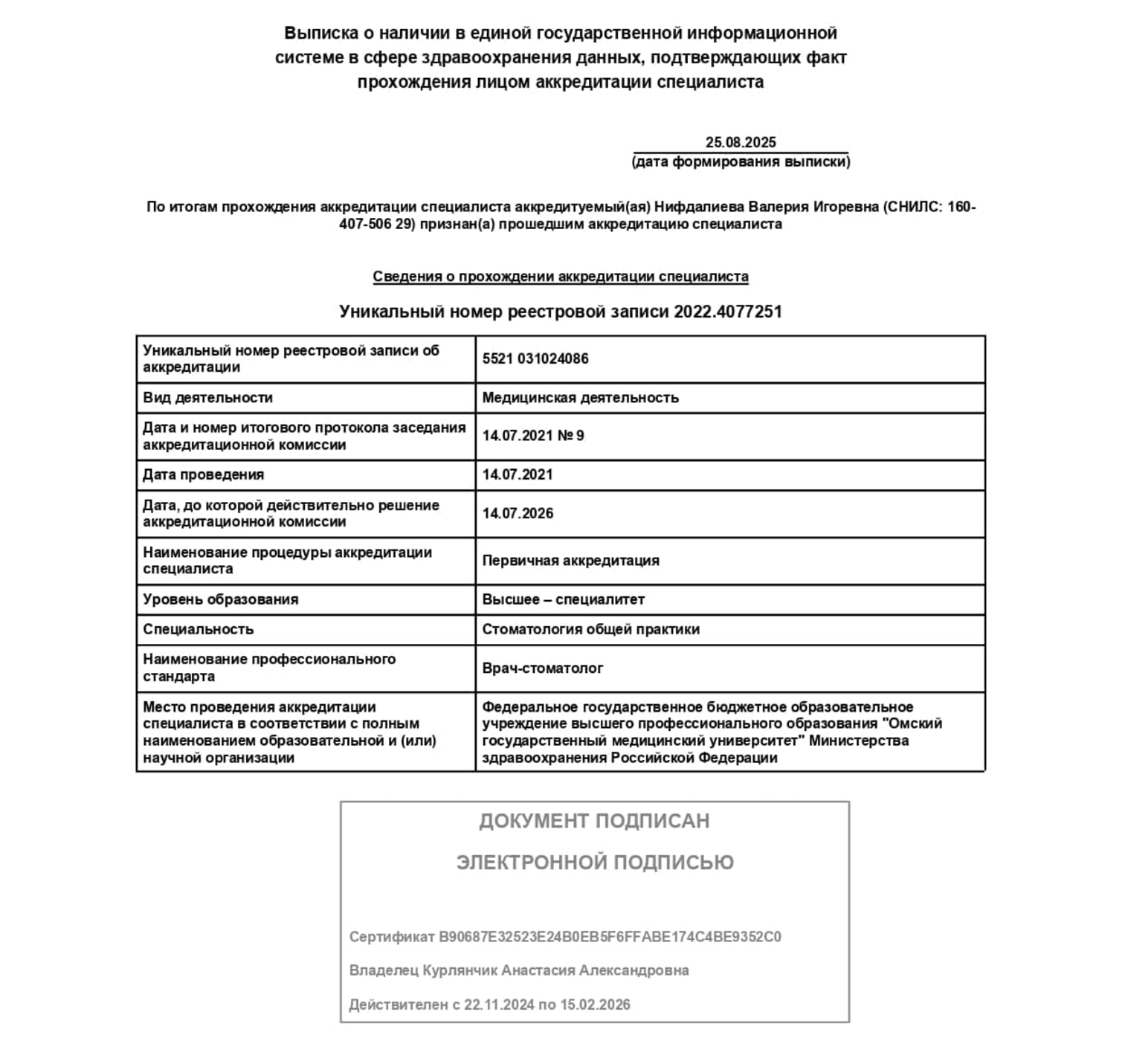 Нифдалиева Валерия Игоревна