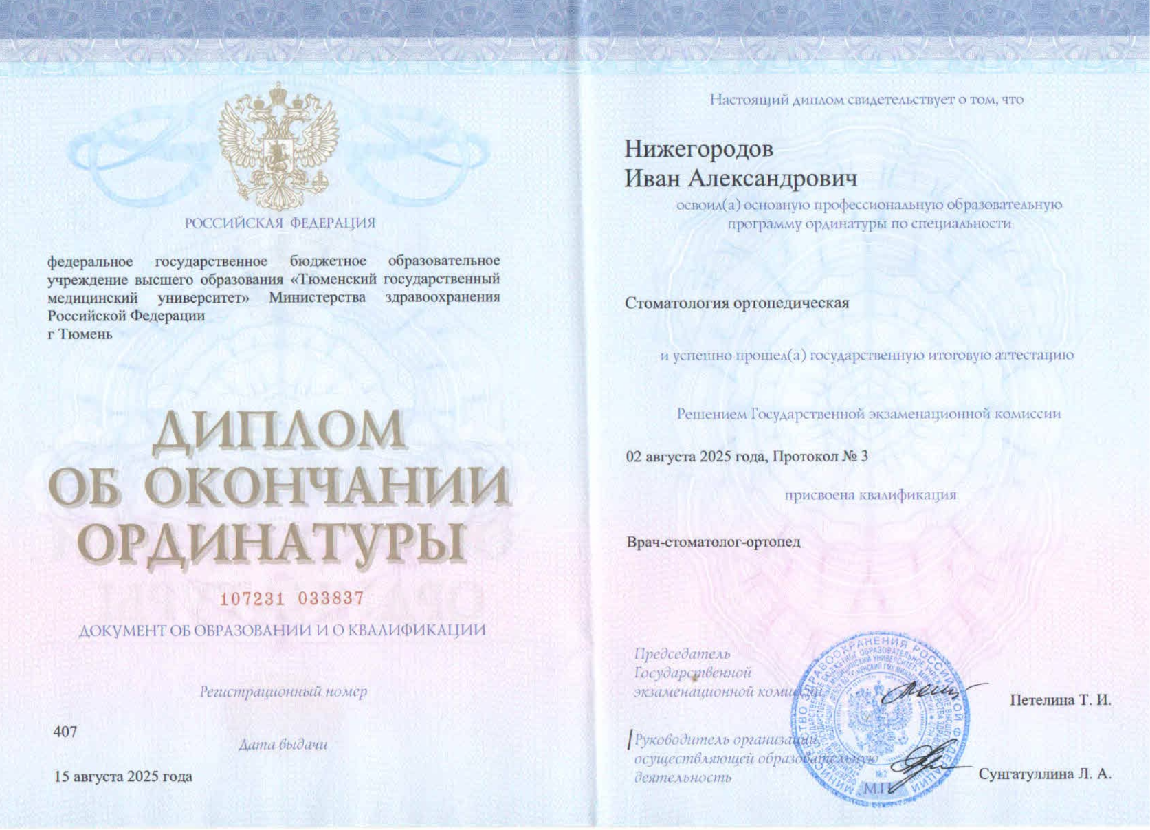 Стоматология - Базовое образование - 2025 г. Тюменский государственный медицинский университет