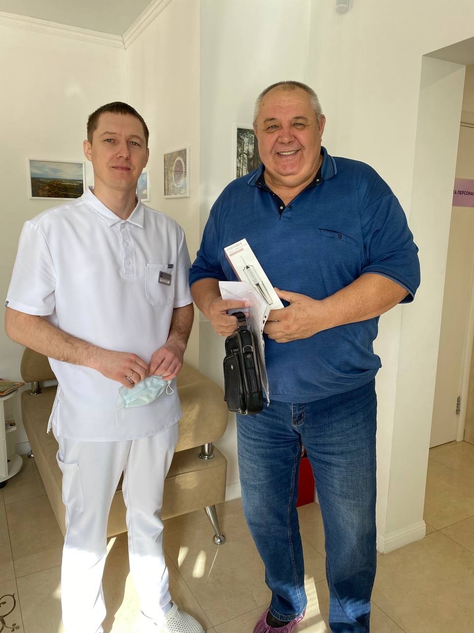 Протокол All‑on‑4 на верхней челюсти позволил пациенту получить полноценную несъёмную улыбку без многомесячного ожидания. Однако качественное лечение — это только половина успеха. Вторая половина — правильный уход. Именно поэтому клиника «Забота» не только завершила кейс, но и передала пациенту ирригатор с насадкой, а также обучила его гигиеническим процедурам.